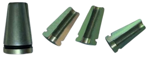 These are conical shaped components slitted in three equal parts and held together around the strand by means of special wire circlips. Thread on the concave portion of each slit holds the strand like a jaw and ensures proper locking after stressing. Proper Hardening and tempering treatments are done to achieve superior quality and strength.